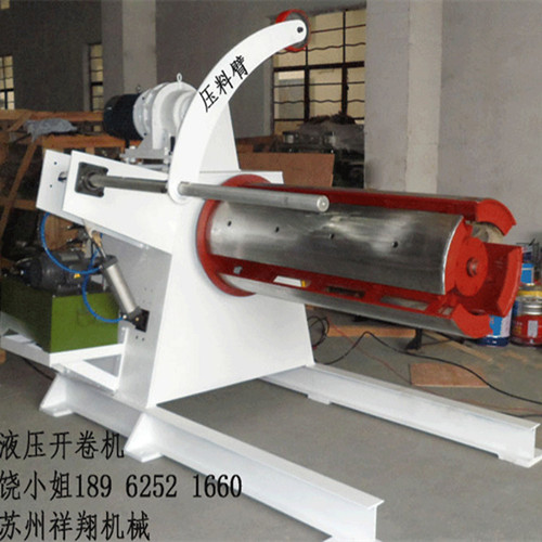 液压重型材料架的用途及作用:可将重型材料放入开卷机中,以便与冲床同步运作,提高生产效率。根据材料的内径可任意调整材料架的外径,方便将材料放入开卷机上。本机采用减速机+马达一并运作。